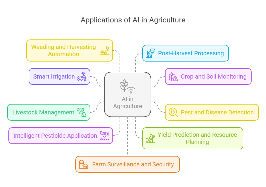 AI-powered systems utilize data from sensors, drones, and satellites to provide real-time insights into soil health, crop conditions, and environmental factors. These insights allow farmers to make informed, timely decisions, such as adjusting irrigation schedules, detecting nutrient deficiencies, and identifying areas of a field that require immediate attention. With AI, farmers can respond quickly to emerging issues, preventing crop loss and improving yield quality.
