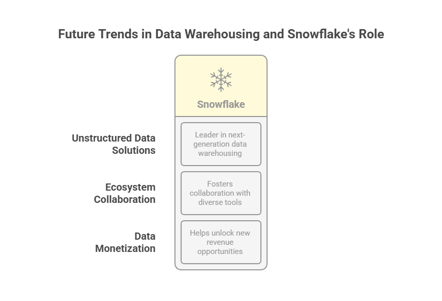 As the value of data continues to rise, the role of platforms like Snowflake will only grow. Key trends shaping the future include: