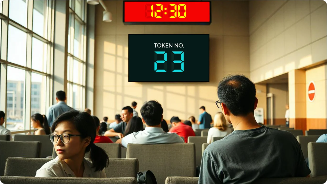 Staff can use desktop or mobile devices to call the next visitor, with counter LEDs displaying real-time ticket numbers and wait times. Visitors can check these displays or use their mobile devices to view the queue status, receiving alerts for upcoming appointments.